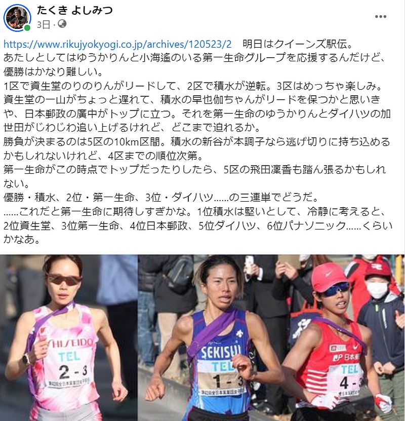 明日はクイーンズ駅伝(全日本実業団女子駅伝)ということで、予想をしてみた。