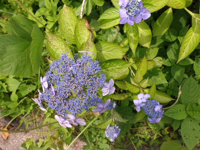 こんな紫陽花がポツポツ咲いている脇の道を……