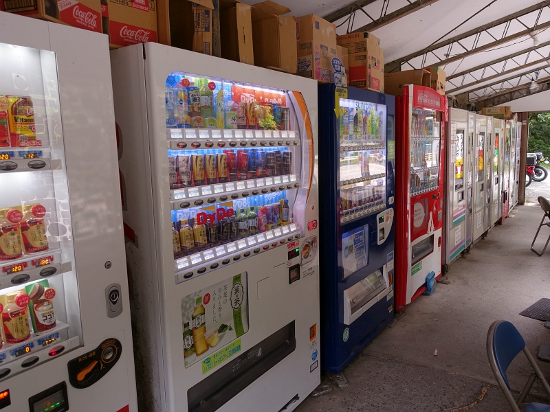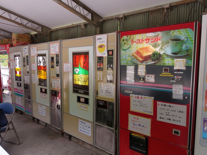 道沿いにお食事処飛鳥という庶民的なレストランがあり、そのすぐ先にバイカーたちに人気の自販機コーナーがある。まずはそこをチェック。