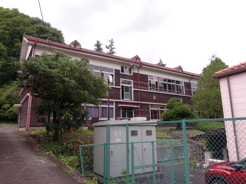 この先、Uターンして左へ降りて行く細い道に入ってまっすぐ進むと、本日の主目的地である旧花輪小学校記念館に着く。