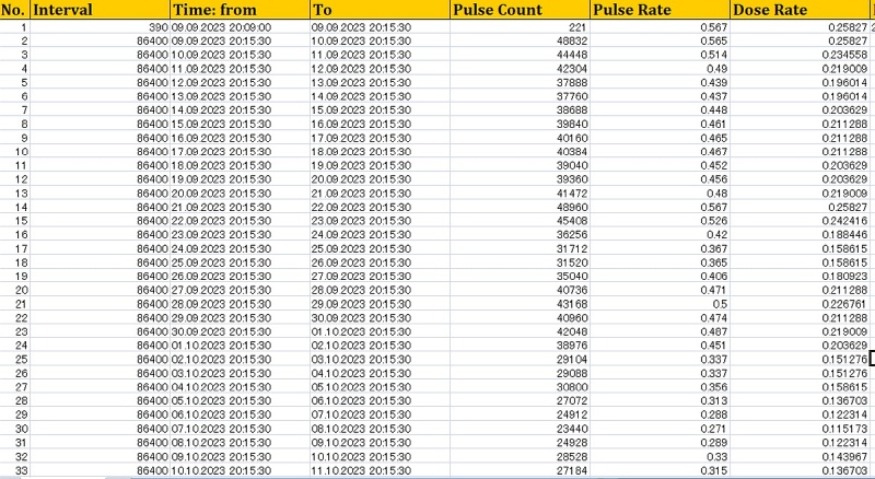 ↑前回リセットは2023年9月9日。右端が1日平均の線量で、およそ0.1~0.2μSv/hだと分かる