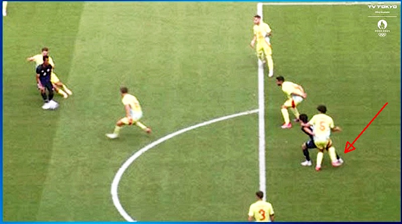決勝リーグでの日本vsスペイン戦。日本の同点ゴールがオフサイドで取り消しになったというシーンは何度見返しても分からなかった。↑どうやらこのことらしい。