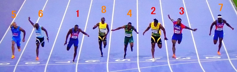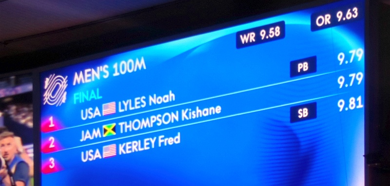 そのライルズは途中ではビリだった。9.79秒は彼のベストタイム。