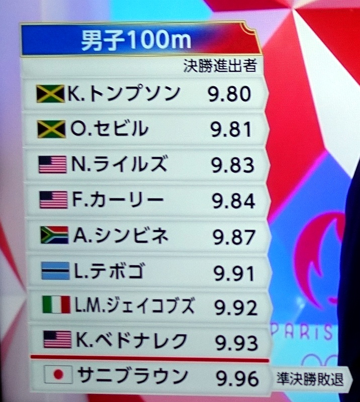 準決勝のタイム。こりゃ、日本選手の決勝進出は無理だわ