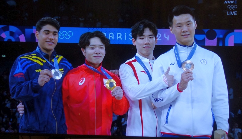 - 優勝候補は台湾の唐嘉鴻選手と予選1位の中国・張博恒選手。しかし唐選手は落下。張選手は着地で大きく前につんのめって手をつくという大失敗。8人の選手のうち6人が失敗して、ほぼミスなく終えたのは2人だけ。その2人が金・銀メダル