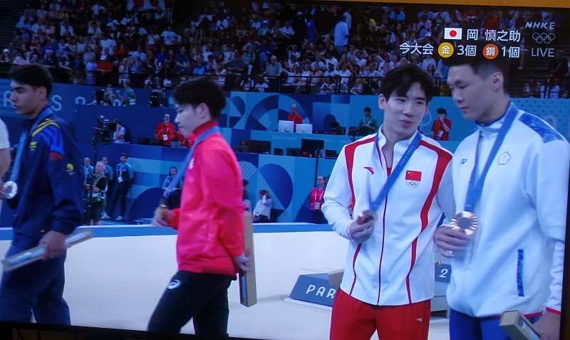 - 3位の張選手が何度も同点で銅メダルを分け合った台湾の唐嘉鴻選手に話しかけたり、握手をしようと手を差し伸べるも、唐選手はほぼ無視