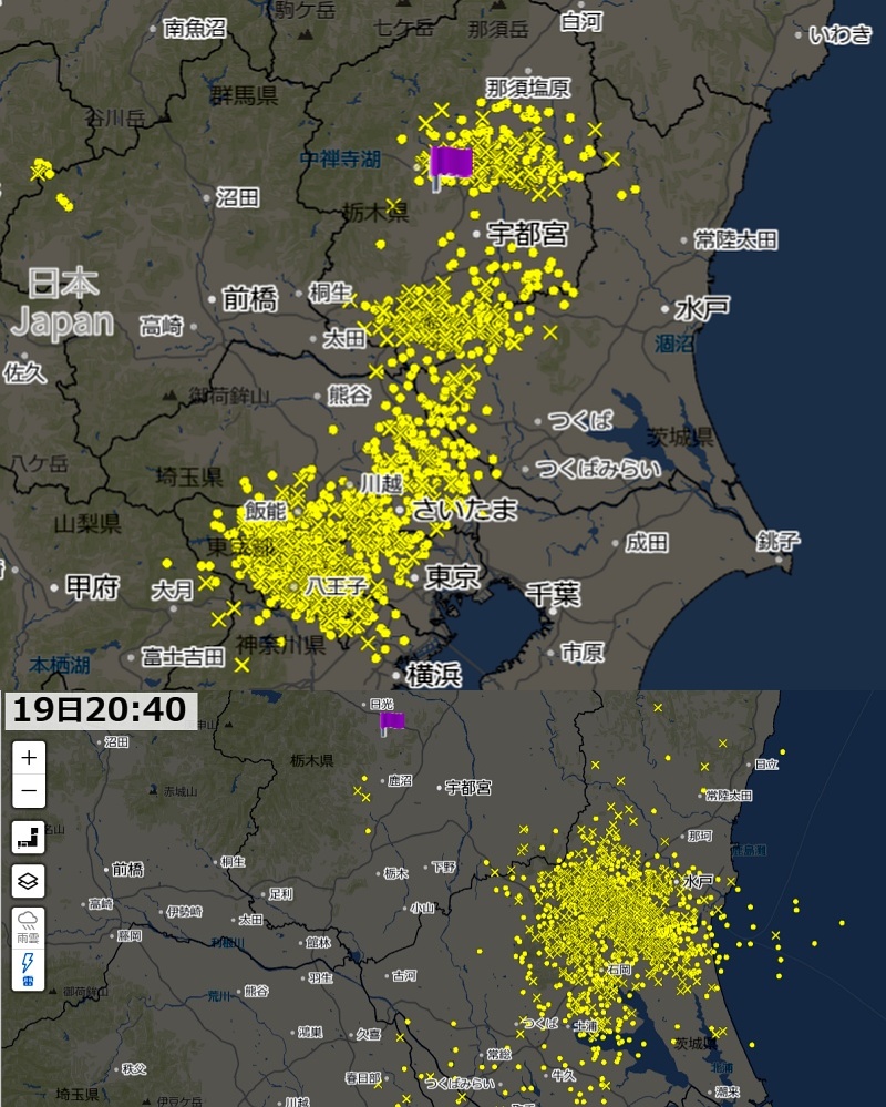 雷鳴は聞こえるが、雨はほとんど降ってない。ちょうど雨雲の狭間に位置しているみたい。うちより北側も南側も、今かなりすごいことになっているんじゃないかしら。矢板、鹿沼、塩谷町あたりかなあ