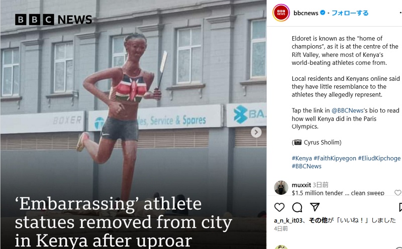 キピエゴンら、ケニアのレジェンド陸上選手を称える像が、あまりにひどいということで撤去になったという、なんだかな~、なニュース。