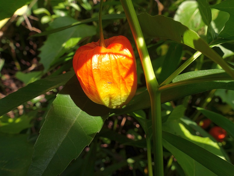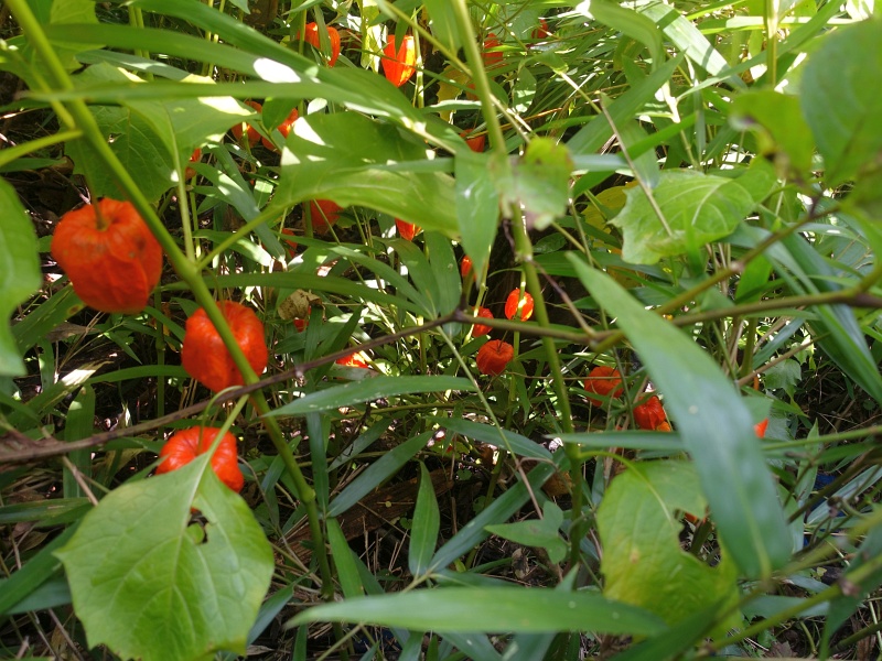 かわず庵とズボラ苑の間は草がすごいことになっていて、よく見えないんだけれど、草むらの中に鬼灯がいっぱい生っていた