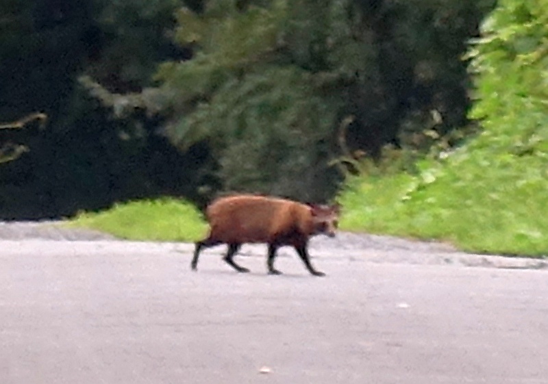 ズームが効かないカメラだったので、無理矢理切り取りで拡大。やっぱり見間違いではなく、タヌキだわね
