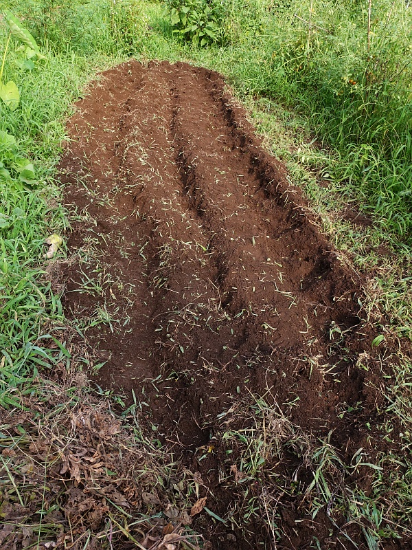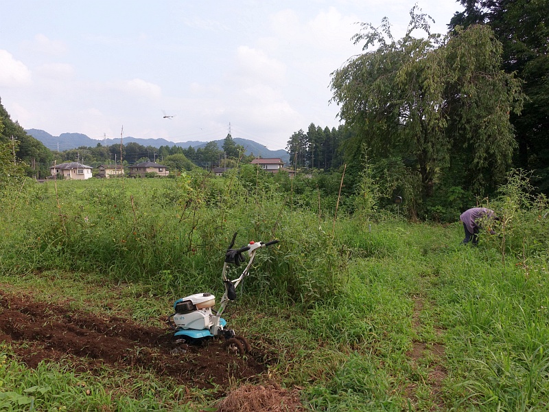 全滅した枝豆の場所をドッコイ号で耕し直して、冬大根の種を蒔いた