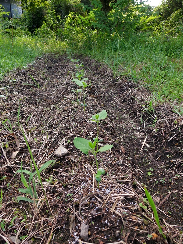 隣の畝は地這えキュウリ。芽はちゃんと出てきているが、今からでも間に合うかな