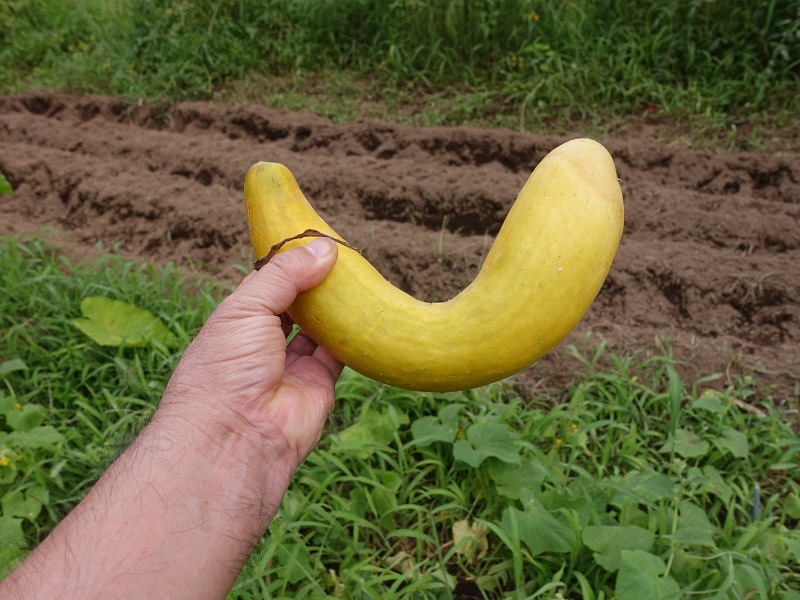 後から植えた地這えキュウリに最初の実が生っていたのを気づかずにいたら、こんなことになっていた。他には1本も見当たらず。こいつが周辺の栄養を全部吸い取ってしまっていたのだろうか?