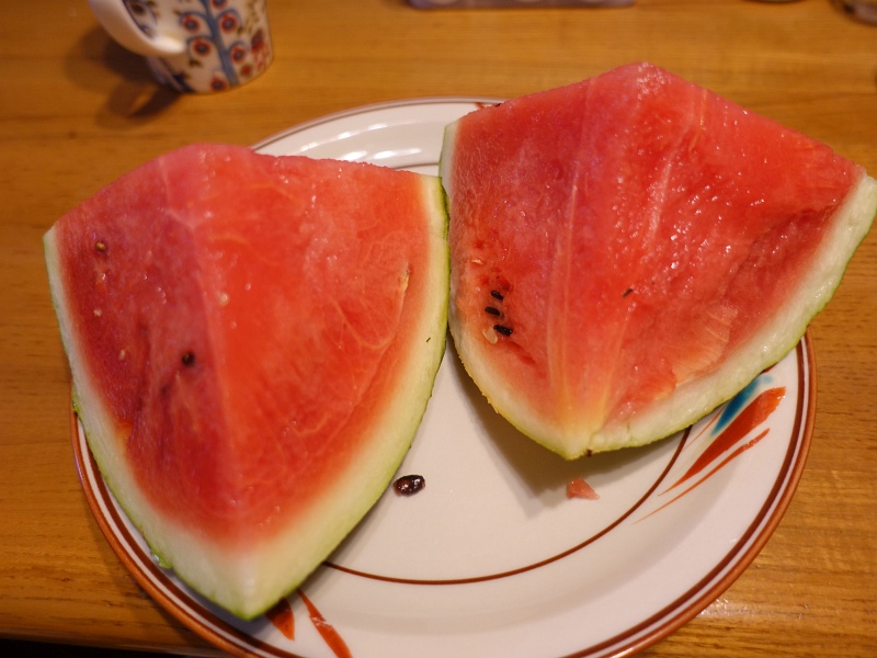 お隣さんからSuica、じゃなくて西瓜をいただいた。丸ごと一個。4日にわたって食べた。買うと2000円とかするみたいで、なんと贅沢なお裾分けだろう。近所の自家栽培率高い