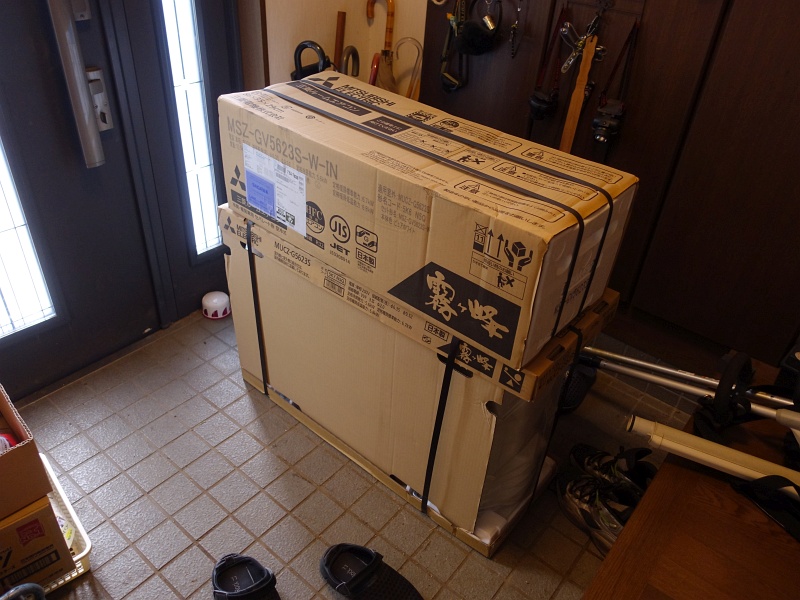 室外機は真下に設置すれば安く済むのだけれど、南側で直射日光があたるので、横まで引っ張っている。これでダクトが標準工事より3m伸びて延長代金が追加され……。工事と撤去・リサイクル費用だけで7万円くらいかかった。でもまあ、仕方ないな。