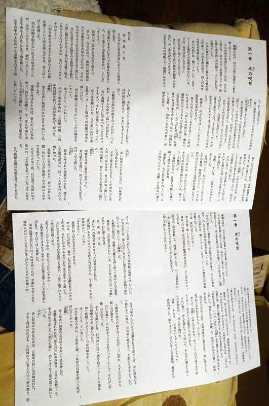1998年、『カムナの調合』(読売新聞社刊)と『黒い林檎 The Secret of Black Farm』(河出書房新社刊)の間に書かれた約800枚の長編伝奇ミステリー。政治、宗教、企業の癒着、人間の欲と自然界の掟との関係などを、陰陽師や呪禁道などの新解釈を交えて展開させる大作。たくき小説のファンからは「最高傑作」「3.11の前にこんな作品が存在していたとは驚き!」「細かな描写や哲学的なテーマも堪能できる快作」などと賞賛されたものの、世に出ないまま眠ってしまった幻の作品。