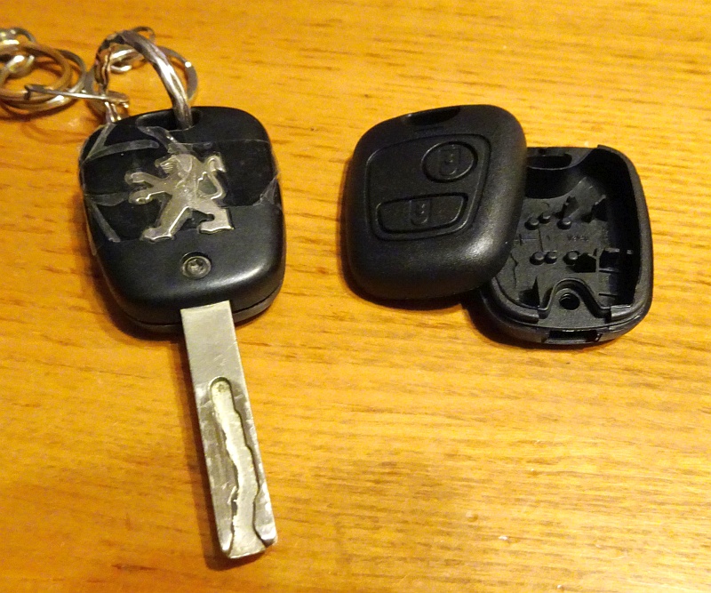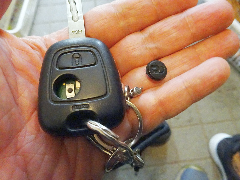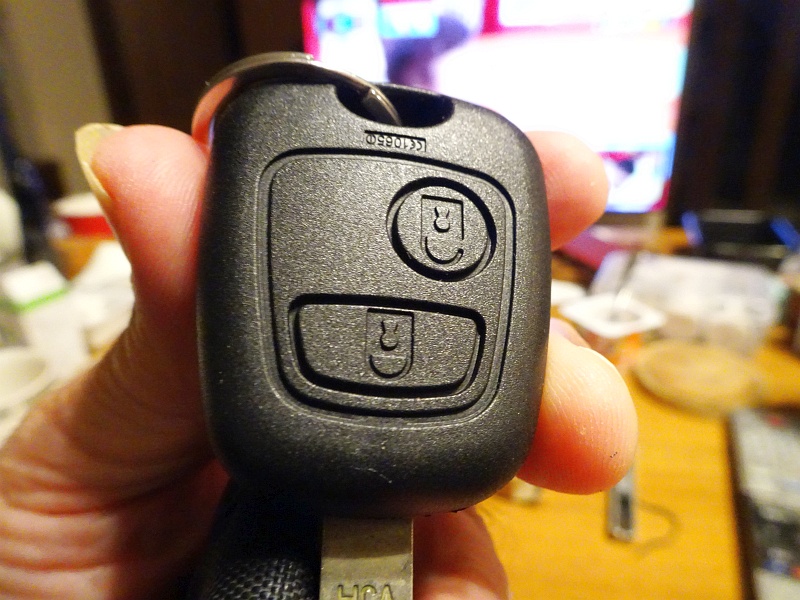 苦労の末、見事に復活! 片側はプジョーのエンブレムが入っていなかったので、従来のやつ。壊れたボタン側だけ今回買ったやつを合わせて、うまくいった