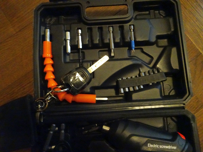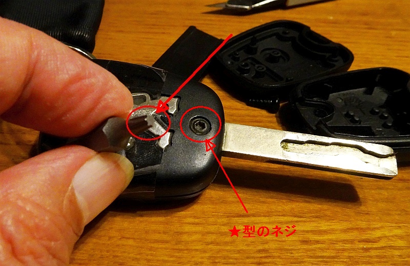 しかし、いろいろ問題があって、まずはオリジナルキーのネジが欧州規格の★型ネジ。普通のプラスドライバーでは合わないのだが、こないだ買ったtemuの電動ドライバーについていたビットにあった。やったね