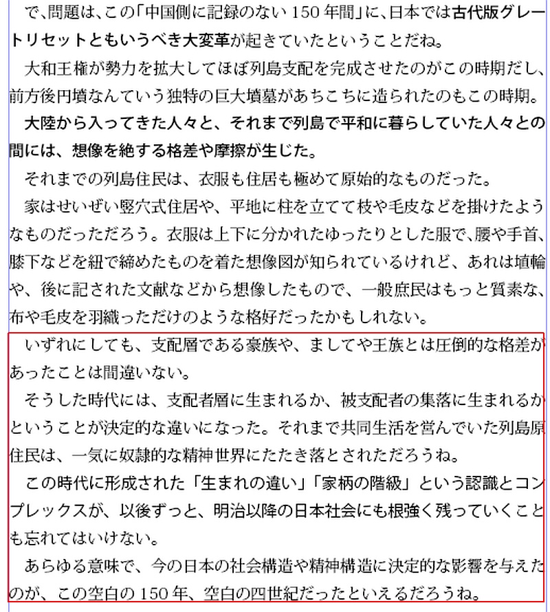 弥生時代を築いた渡来人は2系統いた。1000年の「暴力団時代」の後に訪れた奇跡のような戦のない200余年。西郷、大久保、板垣らが「まともな維新」をぶち壊して、イギリス傀儡政権を作ってしまった。