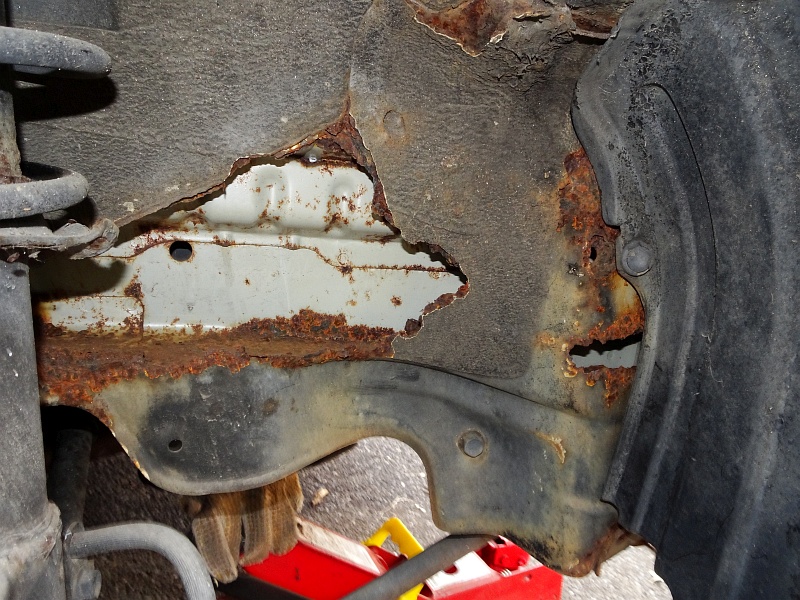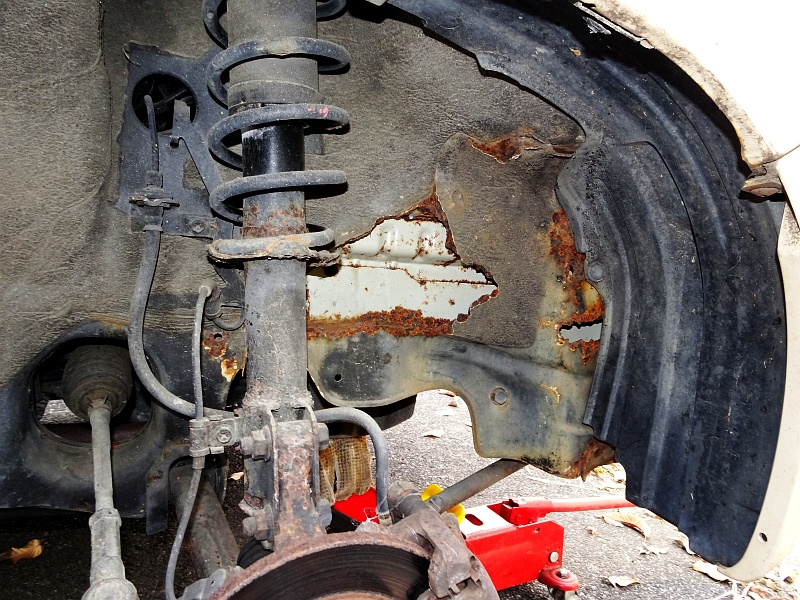 改めて見ると、相当なダメージ。フェンダー側まで腐っている