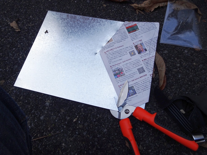 購入した0.27mm厚のトタン板を切って、穴の形になるべく近づける