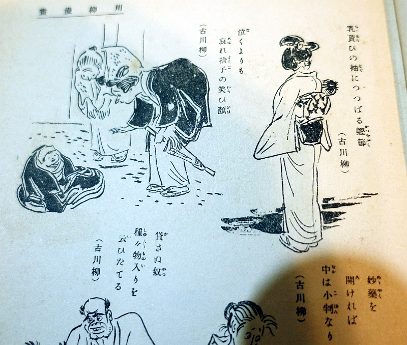 「泣くよりも哀れ捨て子の笑ひ顔」「乳貰ひの袖につっぱる鰹節」なんていう川柳は、捨て子や、乳が出なくて他人の乳を貰うことが日常的なことだったのだと思わせる。他人の乳というのは、その乳を出している女性は自分の子を流産したり間引きしたりしていることもあるわけで、隣りにある句の「捨て子」の母親かもしれない。