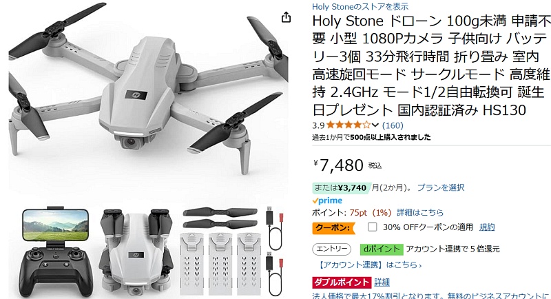 その後、そういえばドローンって、死ぬまでに一度くらい経験してみたいと思っていたんだよなあ……と、あれこれ眺めていたら、またまたポチしてしまった。