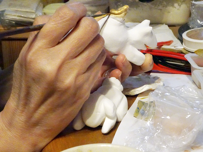 すでに完成写真はUPしたけれど、雛守犬は時間切れで彩色作業に。今年は全然売れてないのは、このせいかもしれない。責任を感じる……うぅぅ……