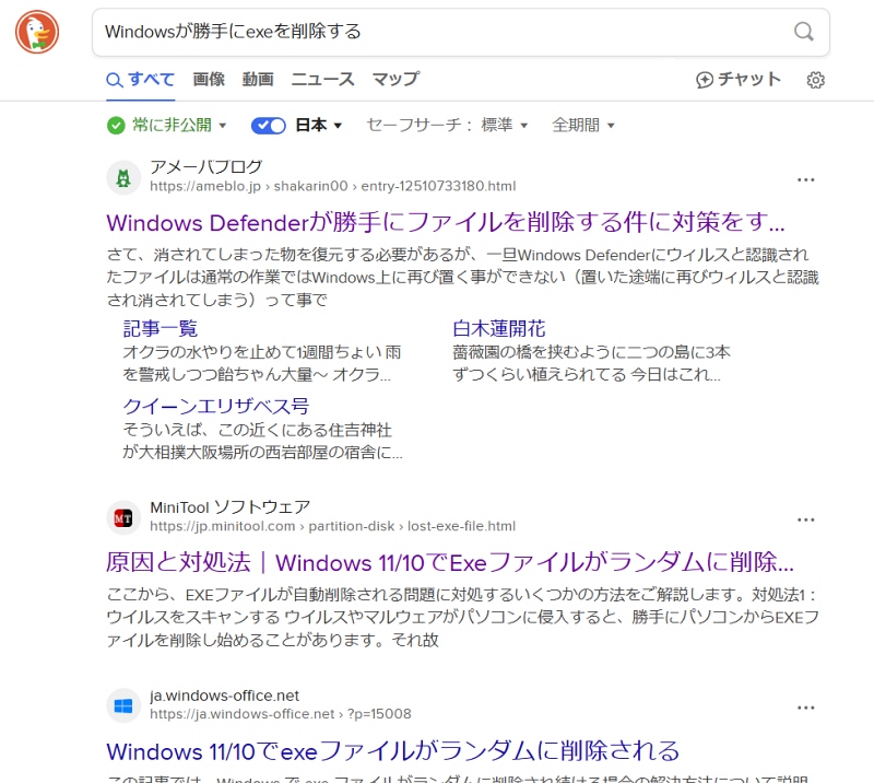 WEBで「エクスプローラが勝手にexeを削除する」で検索して、対策ページを見つけたので復活できたけれど、寝る直前のことで、すごいストレスと恐怖を感じた。