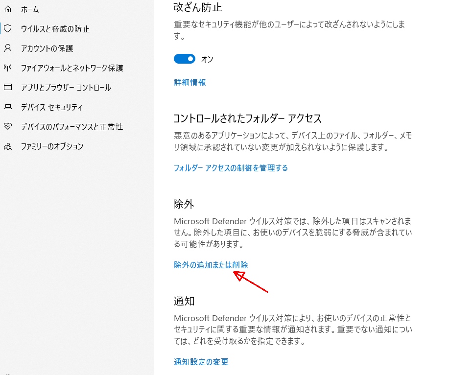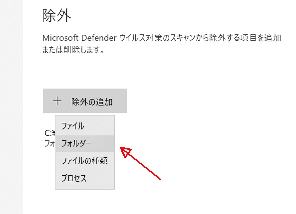 2.Windowsディフェンダーの自動実行対象外リストを作成する
