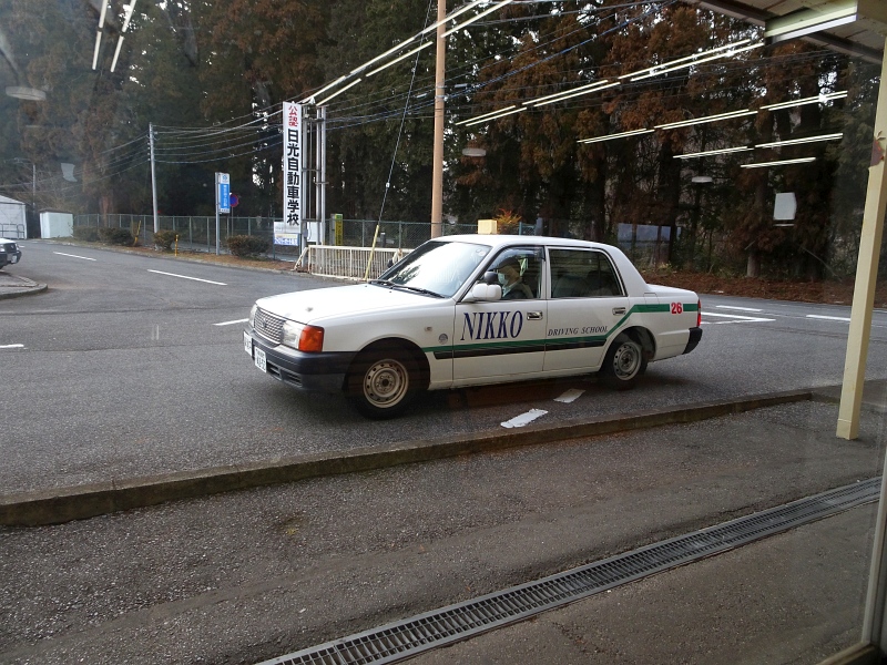 教習車は古いトヨタ コンフォート。タクシー専用車として開発された車種で、これは教習車仕様。製造終了してだいぶ経つ