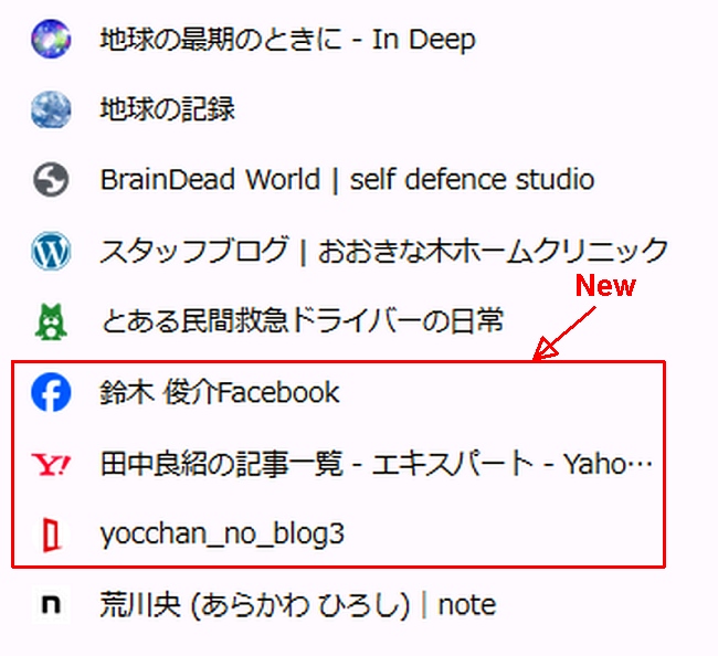 毎日の読みものリスト。赤囲みの部分は最近追加した
