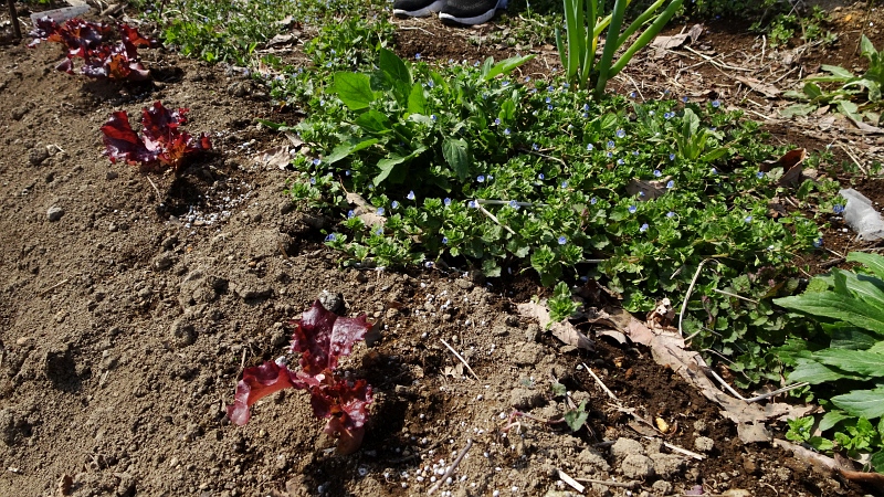 レタスの隣りに生えてきたのはオオイヌノフグリだろう