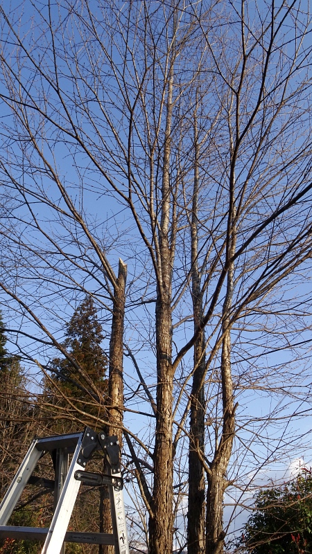1本立ちと違って株立ちにしてあるのが育つと伐るのが大変。