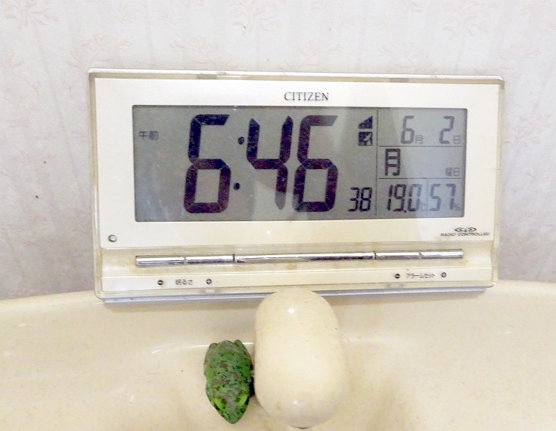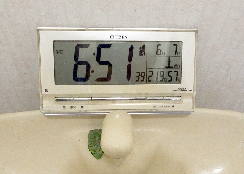 1日は86400秒。6/86400は約0.00007。1日10回トイレに入って、2分そこで過ごすとして、20x60秒で1200秒だから、確率は0.084。8.4%。でも、2分間のすべてでシャッターチャンスがあるわけじゃない。時計を見て、幾通りもの可能性を考えながら暗算して、お、これはいけるかな、と思ってカメラを構えるわけだから、確率はそれよりずっと低い。
