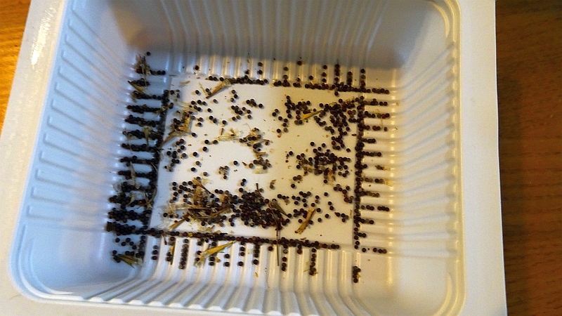 ちぢみ小松菜の種を採ってみた。F1種だと思うので育たない可能性大だけど、駄目元で蒔いてみるか