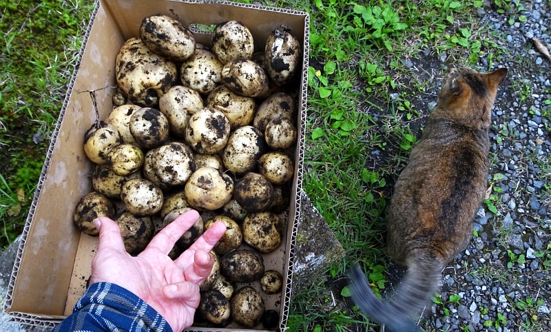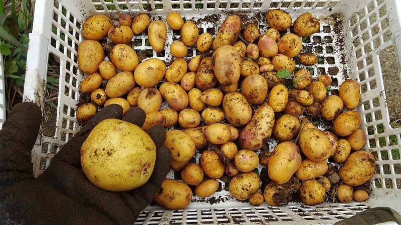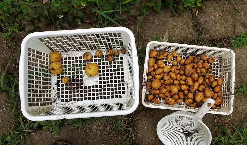 明日からずっと雨らしいので、雨の隙間をぬって残っていたインカのめざめを掘った。ジャガイモとはいえないほど小さいから失敗だけど、まあ、これも勉強のうち。