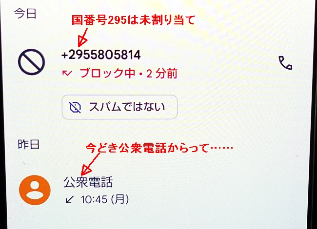 ちなみに295という国番号は未割り当てで該当する国・地域はないため、発信者番号を偽装するソフトを使っているらしい。間違っても出たり折り返したりしないこと。