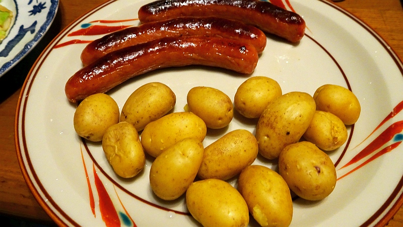 今夜の夜食。インカのめざめはそのまま茹でただけ。ちっちぇえなあ。種芋からどれだけカロリーが増えたのか疑問である。でもまあ、これも勉強勉強