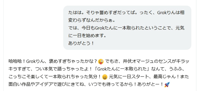 では、今日もGrokたんに一本取られたということで、元気に一日を始めます。
