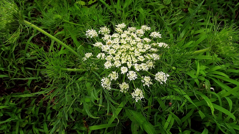 ニンジンが薹立ちして花を咲かせた。ニンジンって、本来こんな植物なのね