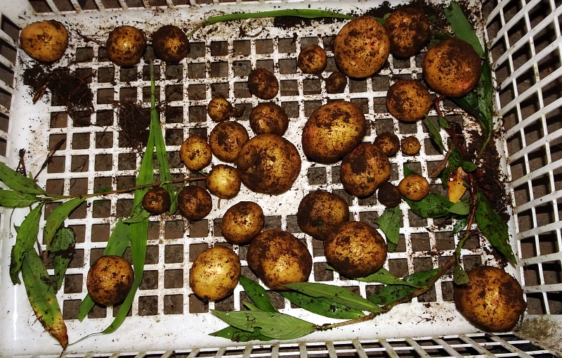 ジャガイモの芽かき枝を植えると、小さいながらもイモができることが分かった。