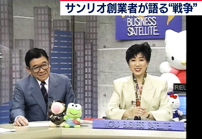 1991年のテレ東WBS。左は朝ドラ『あんぱん』の八木上等兵のモデルといわれるサンリオの辻信太郎社長(当時63歳)。右は現東京都知事。