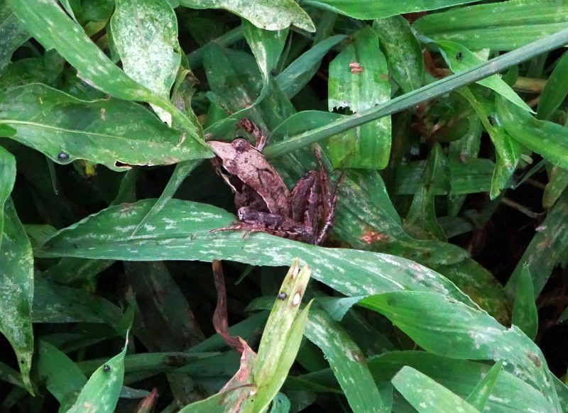 台所の窓に虫を食べに来ているアマガエル。東側の窓には虫が来ていて食べ放題なのだが、北側の窓にはなぜか虫が来なくて、そこに陣取ったやつは全然食えない。河岸を変えればいいのに。