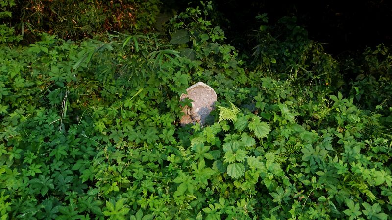 『真・日本史(3)』の表紙に使った如意輪観音像。草に埋もれ、辛うじて顔が見えている