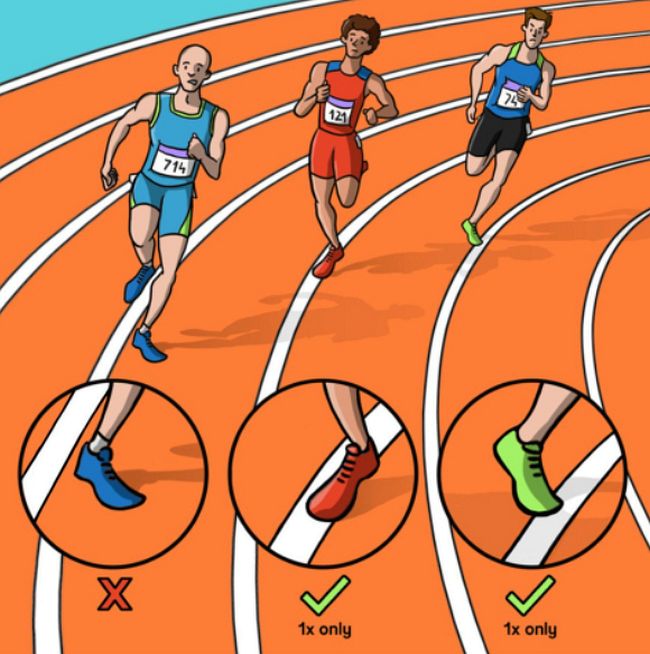 3)直線レーンでは踏み越しても隣の選手の妨害にならなければセーフ
