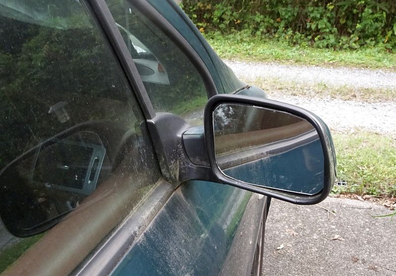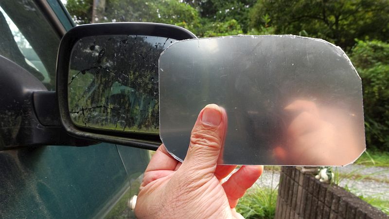 なんとか填め込んでみた。ドアミラーは外側がわずかに湾曲して広い視野を得られるようにしてあるはずなので、平面鏡を填め込んだ場合、今までとは見え方が微妙に違うかもしれない。