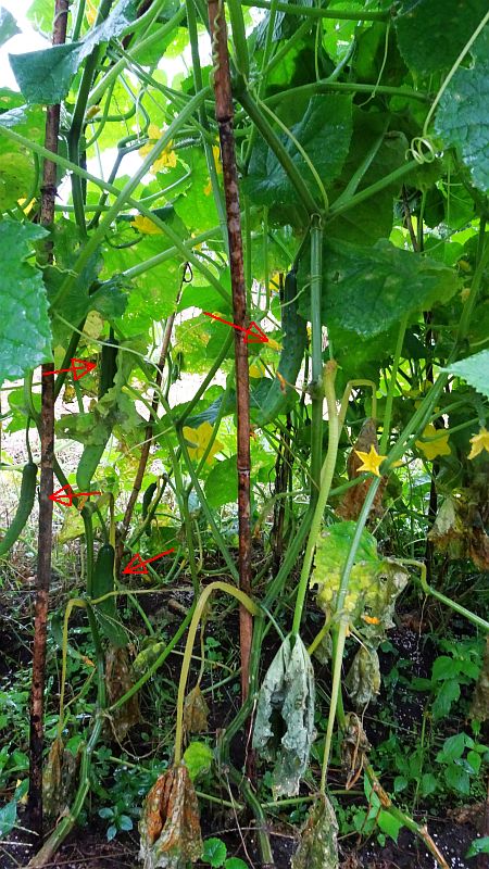 じっくり塗装の合間に畑を覗く。キュウリがそこそこ食えそうな大きさにまで育ってきた。