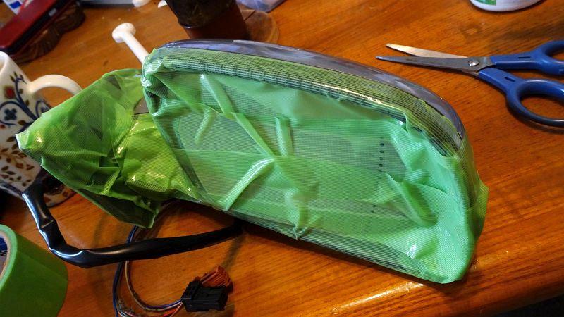幸い外れた細い内部の配線をつないだら、動くことは動いたので、カットできる樹脂のミラーなどを切り抜いて貼り込めばなんとかなるかしら。Amazonにカット可能な樹脂ミラー板を2種類発注した。うまくいくかどうかは明日、ミラー板が届いてからの奮闘次第。