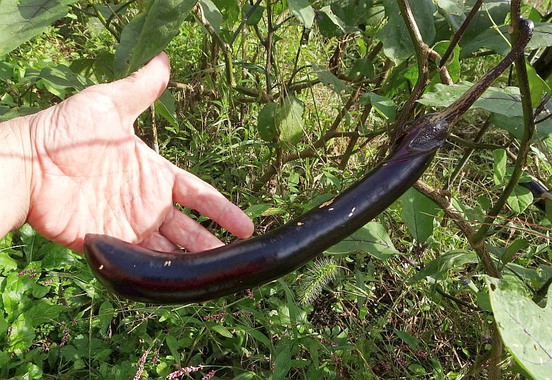 ナスもまだ採れる。長なすは多収穫品種なのかな。1本からずいぶん採れる。